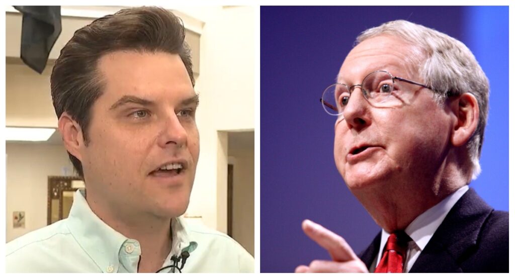 A frustrated Rep. Matt Gaetz (R-Fla.) has fired a verbal shot across the proverbial bow of Senate Minority Leader Mitch McConnell (R-Ky.) and other squishy Republicans who helped majority Democrats pass another massive spending bill just days before the GOP is set to take control of the House.