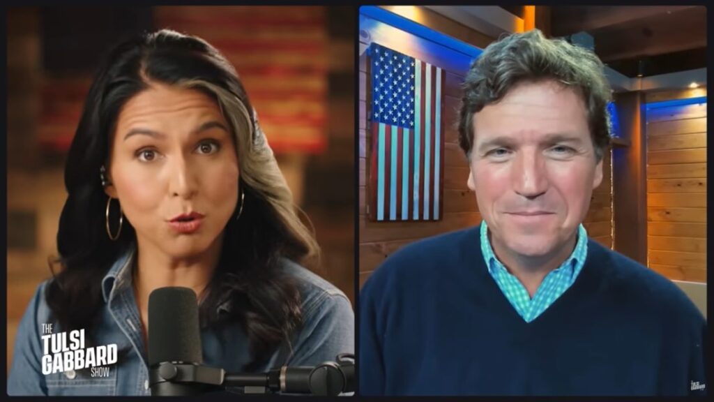 It is amidst this shady backdrop that a loaded conversation between Tucker Carlson and former Hawaii Rep. Tulsi Gabbard, who left the Democratic Party on Carlson’s show, has resurfaced.