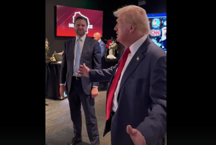 A funny and candid video clip has surfaced of former President Donald Trump and his newly chosen running mate, Senator J.D. Vance, interacting backstage at the Republican National Convention on Tuesday.