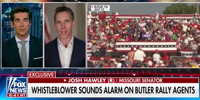 Sen. Josh Hawley, a Missouri Republican who is one of the few members of Congress seriously looking into the assassination attempt against former President Donald Trump at a rally in Butler, Pa., in July, dropped another bombshell during an appearance on Fox News’ “Jesse Watters Primetime” on Thursday. Hawley told Watters that a whistleblower has said the lead advance agent ahead of the event where Donald Trump was nicked in the right ear “was known not to be a top-quality agent” and had failed Secret Service training exams.