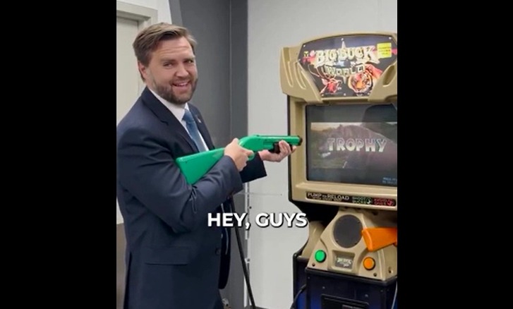 Republican vice presidential candidate J.D. Vance taunted his Democratic opponent, Minnesota Governor Tim Walz, before a rally in Wisconsin on Tuesday. In a brief video, Vance was shown playing the hunting simulator game “Buck Hunter,” which is a classic arcade game. “Hey guys, J.D. Vance here, playing a little Buck Hunter before a rally in Eau Claire, Wisconsin,” the Ohio senator told the camera while holding the video game rifle before dropping this master troll: “Also known as the closest Tim Walz has ever gotten to real combat.”