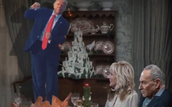President-elect Donald Trump, just hours after extending Thanksgiving wishes to everyone, including “Radical Left Lunatics,” shared a “Christmas Vacation” parody video featuring the faces of prominent Democrats superimposed onto the iconic dinner scene from the holiday classic.