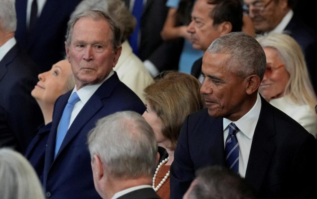Obama then appeared to thank the crowd before turning to Bush and asking, “How can we stop what’s happening?” The video shows Bush responding with a sly grin, breaking into laughter at Obama’s remark. It is unclear whether Obama was referencing Trump’s second term or the crowd’s enthusiastic applause, but Trump supporters are likely to draw the most daunting conclusion.