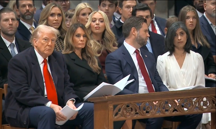 President Donald Trump and Vice President J.D. Vance appeared visibly irritated during the national prayer service at the Washington National Cathedral on Tuesday when the sermon took a political tone.